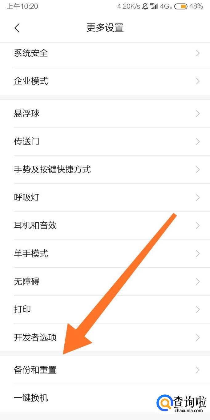 再点击进入“备份和重置”设置选项。