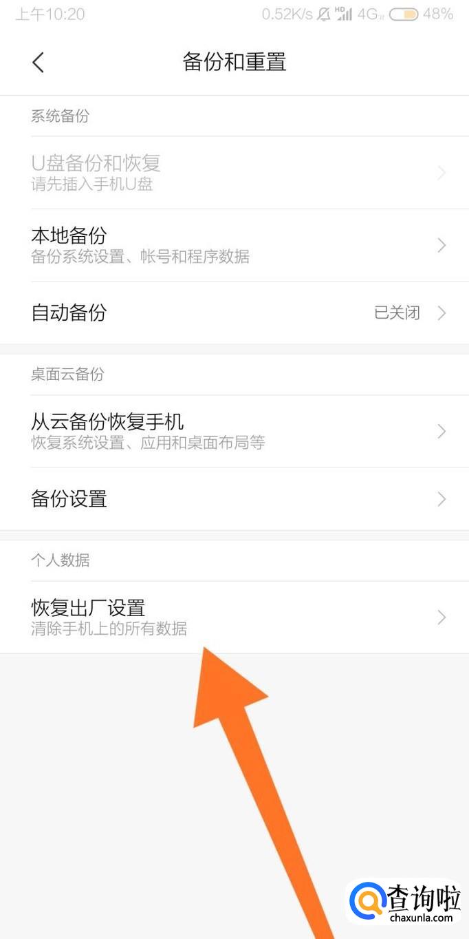 接着点击进入“恢复出厂设置”选项。