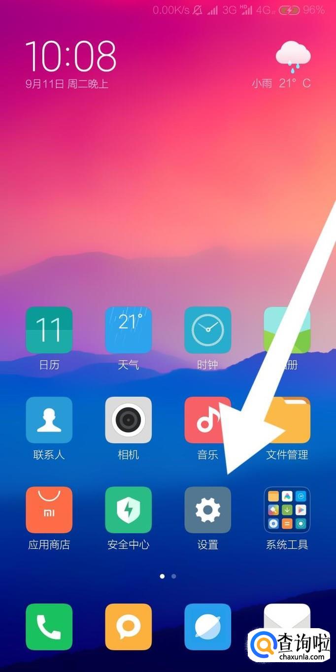 首先点击进入小米手机的“设置”应用程序。