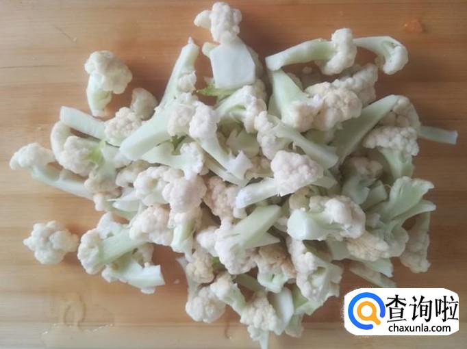 把花菜掰成小朵,洗净后放水里泡上30分种捞出。