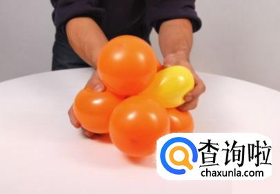 我们先准备6个气球,其中一个颜色与其他不同,我这里准备的是5个橙色的气球,一个黄色的气球。