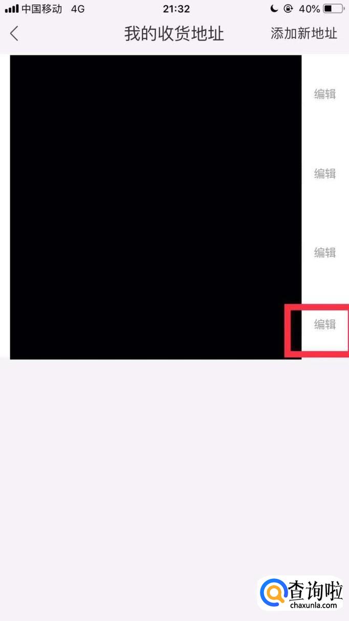 接着点击要设置为默认收货地址右侧的编辑,如下图所示。