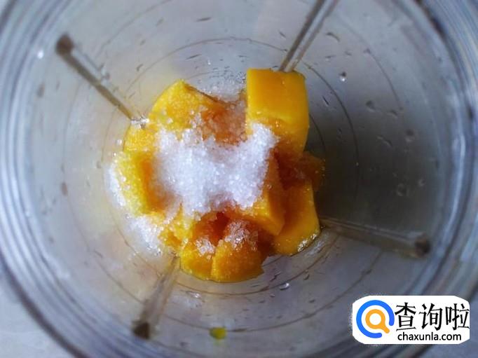 放置打浆机,加适量的白糖。【白糖量由个人的喜好甜度去下】