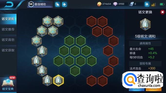 调和:属性是生命值+45,移速+0.4%,每秒回+5.2血。也带5个。
