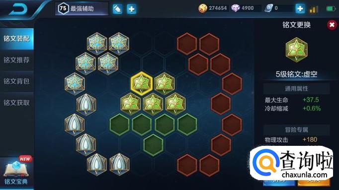 虚空:属性是生命值加+37.5,冷却缩减+0.5%,带5个。