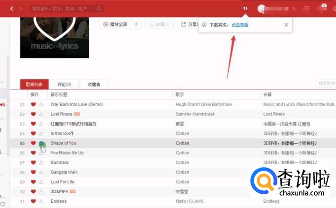 我们可以选择歌曲左侧的快捷下载按钮,也可以选择在选中歌曲单击右键