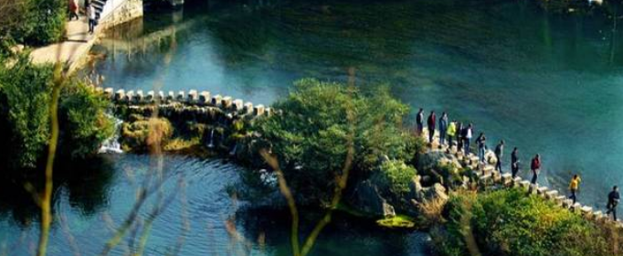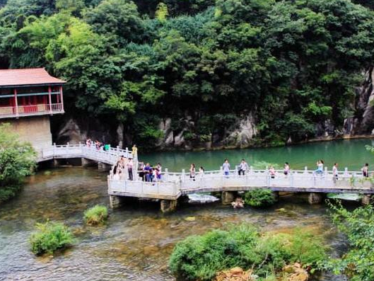 天河潭:有“贵州山水浓缩盆景”的美称,景区里山、水、洞、潭、瀑布、天生桥、峡谷无所不有。景区内可以寻觅到古老的民族文化足迹——香粑车、水车、水碾、水磨等,极有野趣。卧龙湖连接钙化滩与水溶洞,长长的龙脊─百步石桥浮现在湖中,湖水清澈如镜。最有趣的还要算坐上船进入龙潭洞水溶洞了,洞中布满石幔、石瀑、石笋。洞内有一座天然生成的溶岩大石桥,足有8层楼房高,桥旁有一个地穴,绝壁环绕,穴底是一潭深水。是贵州省著名的旅游景点。