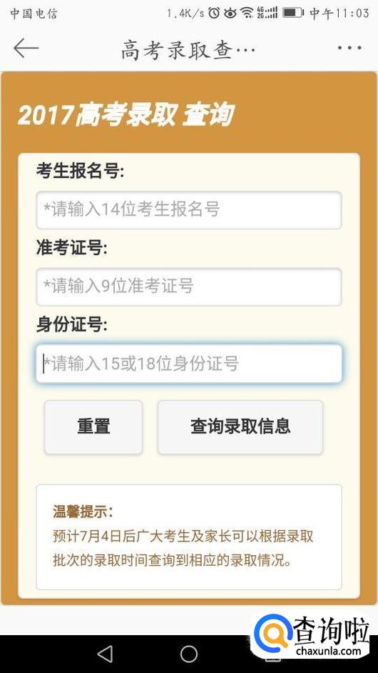 在出现的页面中,填写自己的信息,然后提交,就会有录取信息了。