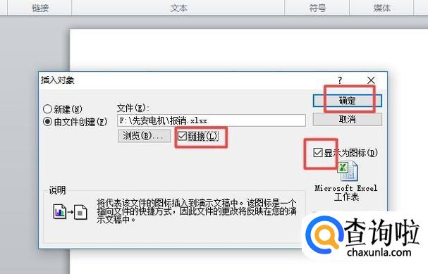 然后我们将显示为图标和链接都勾选上,之后点击确定;