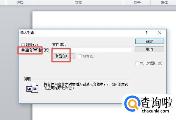 弹出的界面,我们点击由文件创建,之后我们点击浏览;