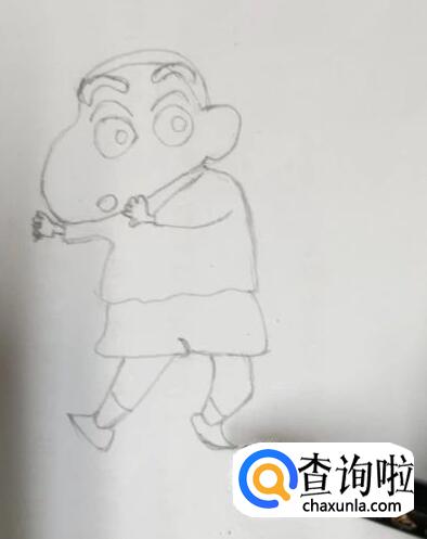 先在画面中央稍靠左的位置,画出小新的头和耳朵。