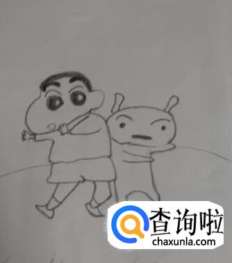上色,在其后勾一条线当背景,蜡笔小新和他的小白便画完了。