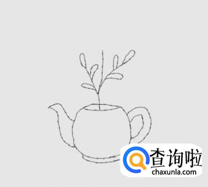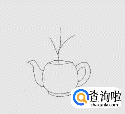 在水壶的上面画出小花的主枝干和分支杆,如图所示: