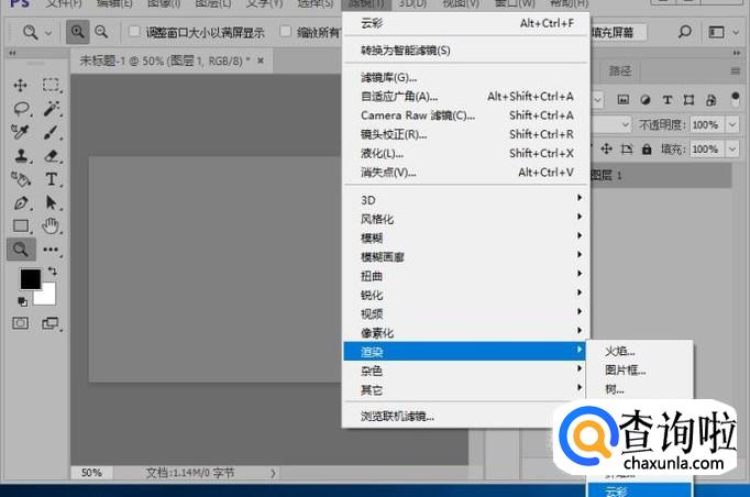 接下来我们给新建的画布填充50%灰色,并添加云彩滤镜效果。