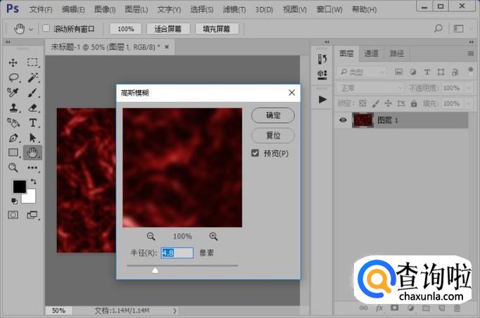添加高斯模糊滤镜效果,参数如图所示。