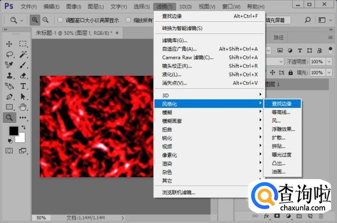 执行滤镜-风格化-查找边缘命令。