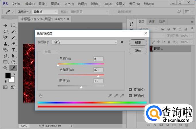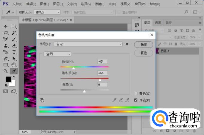 执行图像-调整-色相/饱和度命令,参数如图所示。
