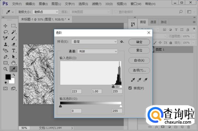 执行色阶命令,参数如图所示。