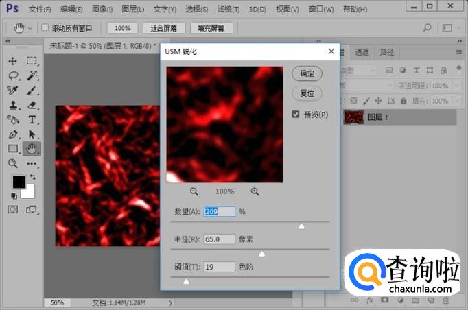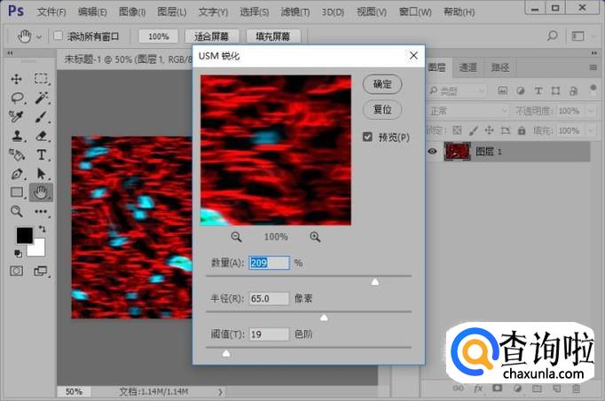 添加USM 锐化滤镜效果参数,如图所示。