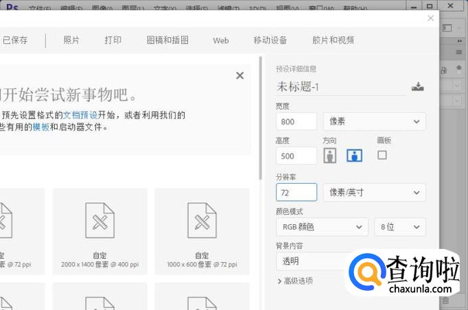 首先我们需要打开电脑里面的ps软件,然后新建一个画布,参数如图所示。