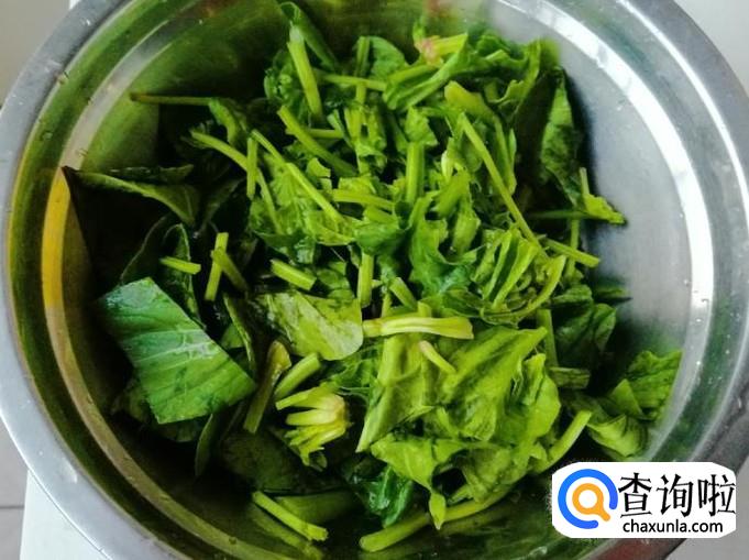 选新鲜的菠菜适量,洗净切好放入容器待用。洗菜过程要注意菠菜根和菠菜心很容易藏有泥土,我们最好是用剪刀剪去菠菜根,然后菠菜叶逐片清洗干净。