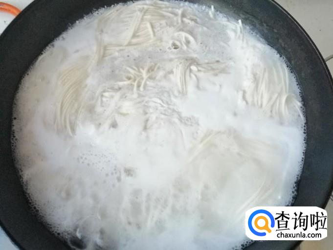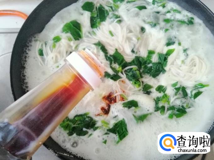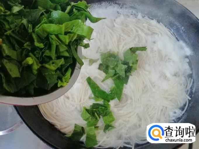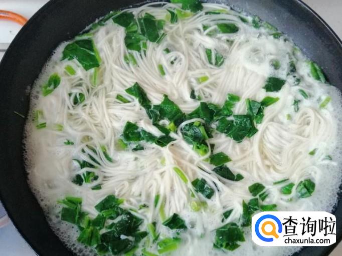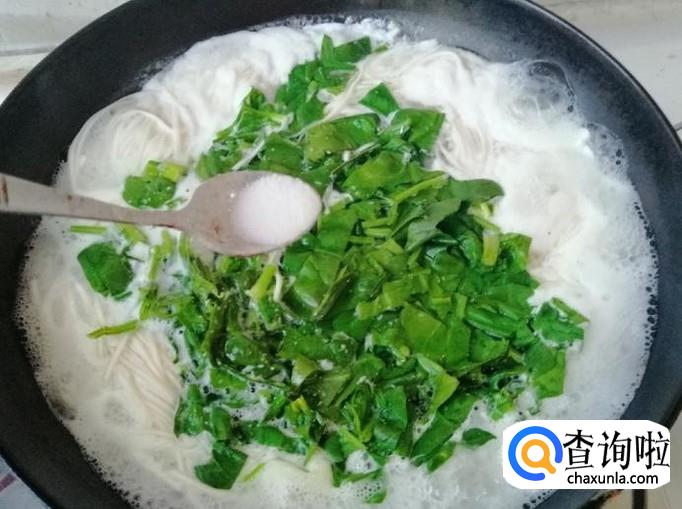 所用的面条厚度不一样,熟的时间也不一样,最好品尝熟了再放入菠菜,菠菜开锅就能熟,等菠菜全入汤中后加入适量食盐。