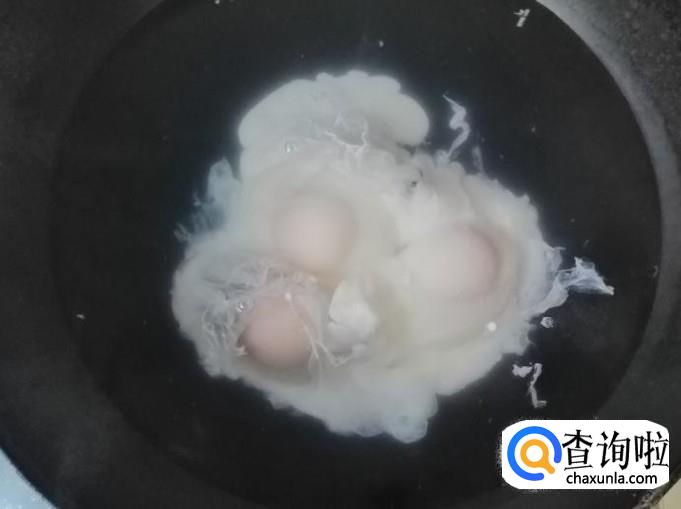下面就点火烧水,水不能完全烧开,查看锅内水快烧开时,就可以把备好的鸡蛋打入锅中,这样荷包蛋不至于被沸水冲散,做成的荷包蛋更完整。