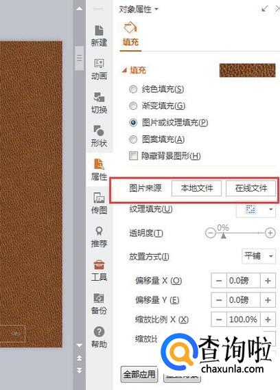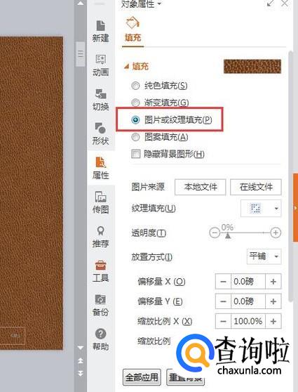 然后在屏幕右侧会出现一个窗口,点击【图片或纹理填充】,如图所示