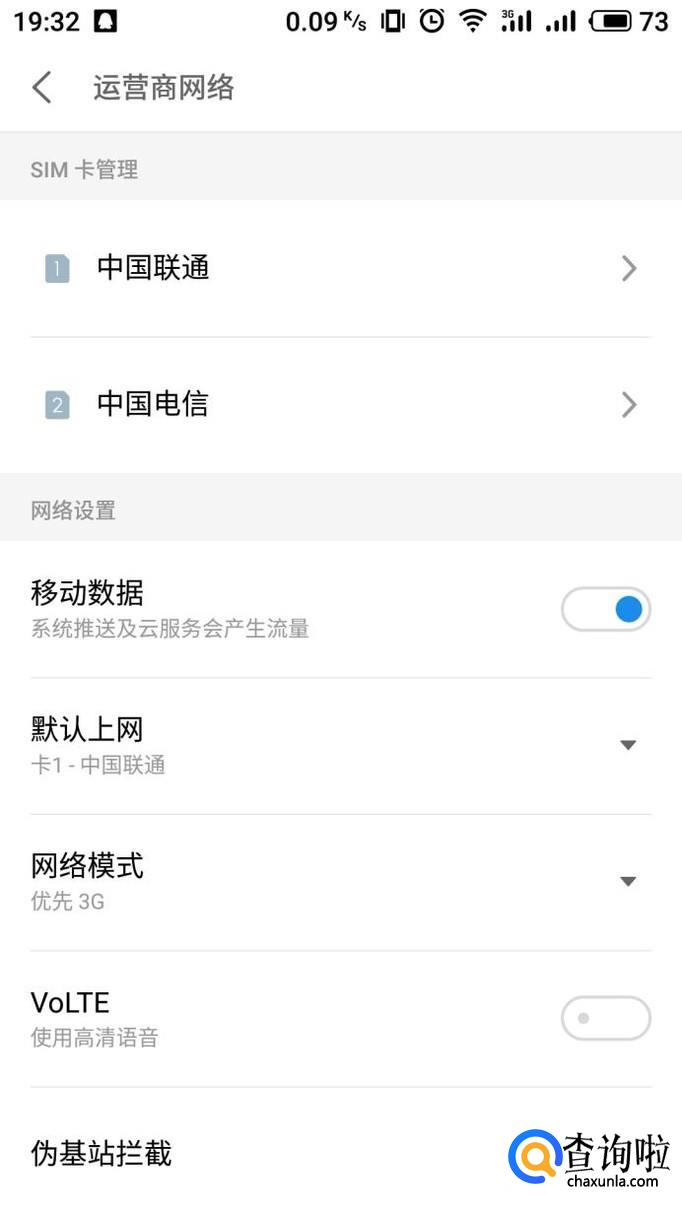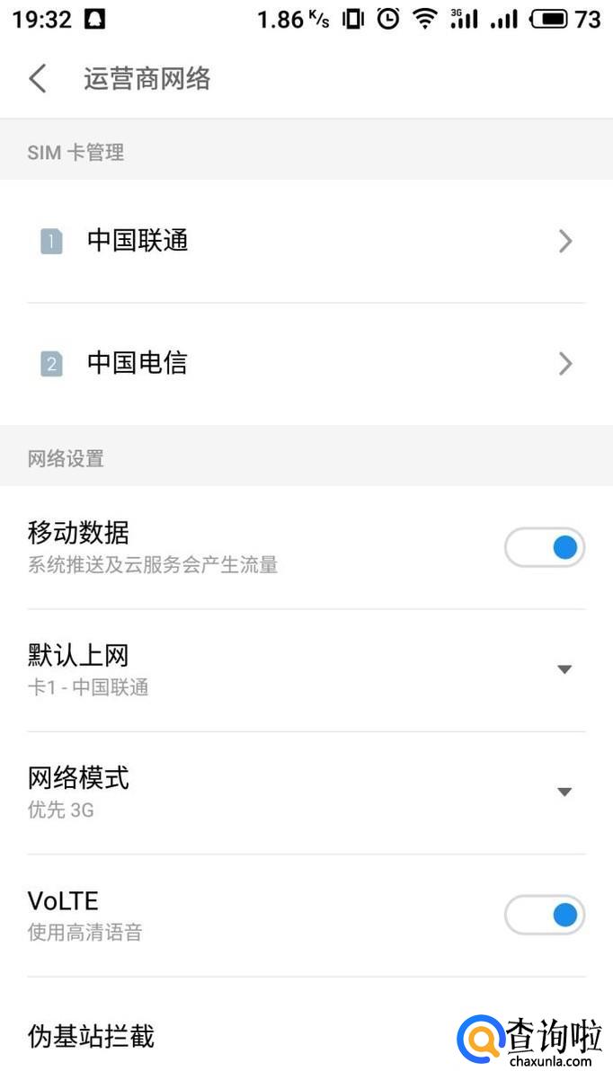 进入运营商网络界面之后,我们在网络设置中就可以看到VoLTE为开启状态。