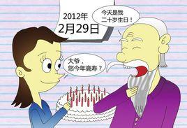 年龄是以一个一个的生日来累计的话,那么毫无疑问地,2月29日出生的人比起其它人,是要年轻得多了,毕竟不是每年都有2月29日。以此推算,2月29日出生的人在20岁时已经可以算是高寿了。