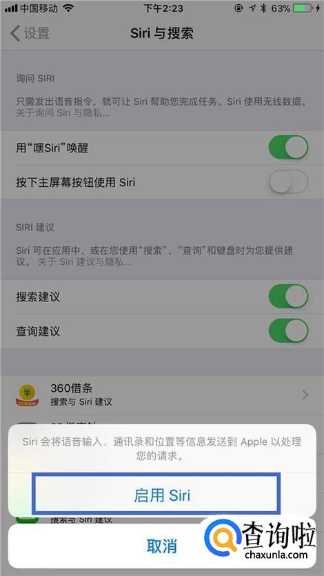 然后点击启用Siri,如下图所示。