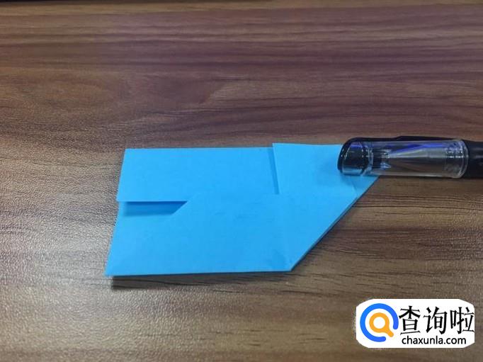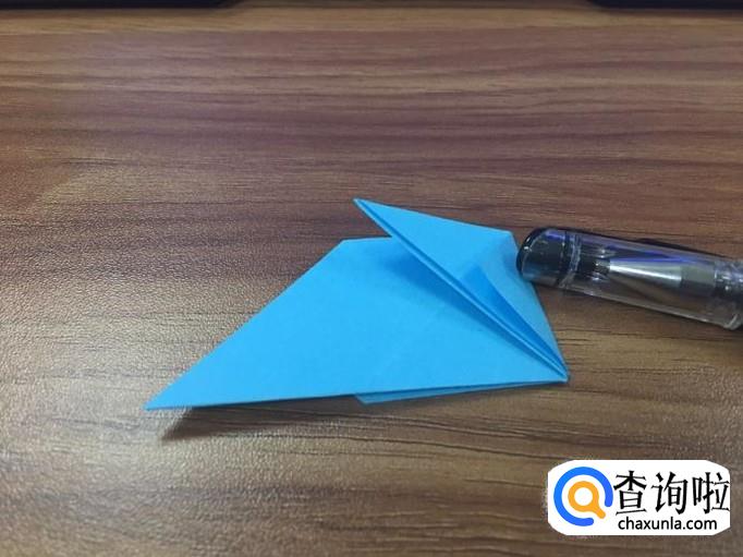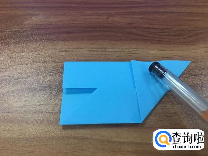 左边的尖角也如上一步骤一样,两边折好,出现一个小正方形。如图