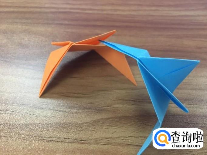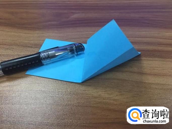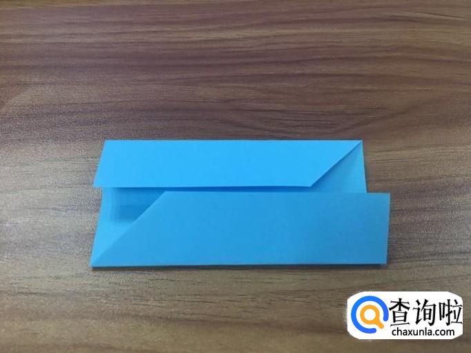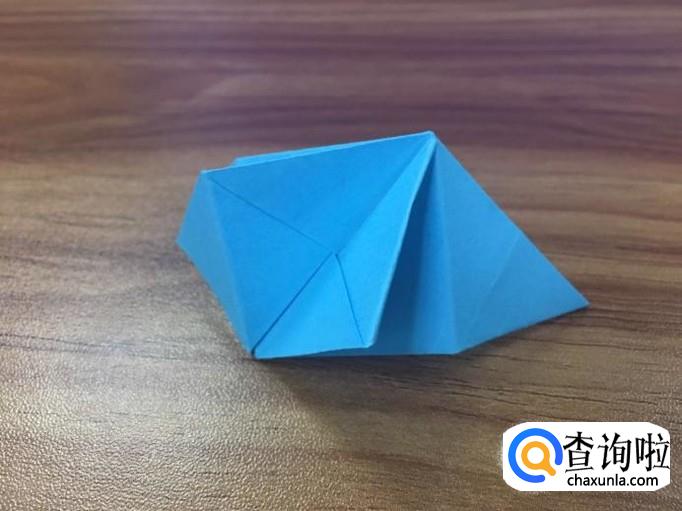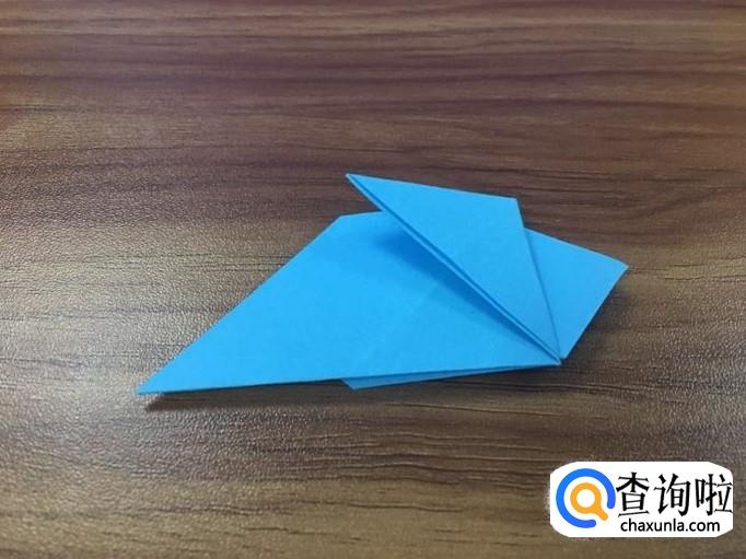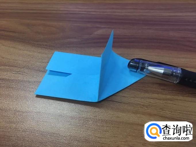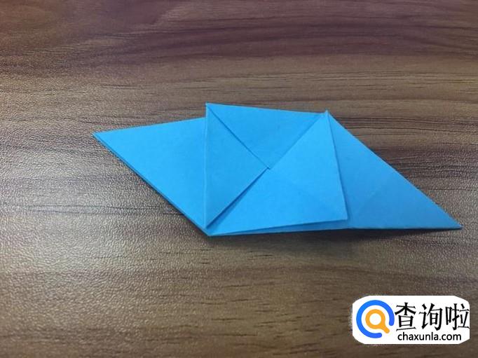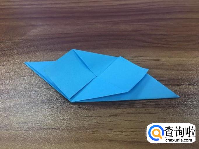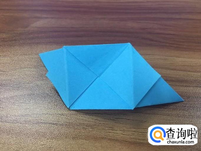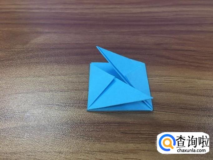 小正方形折好后,翻到正面,将两边的小三角向内折叠。如图