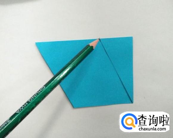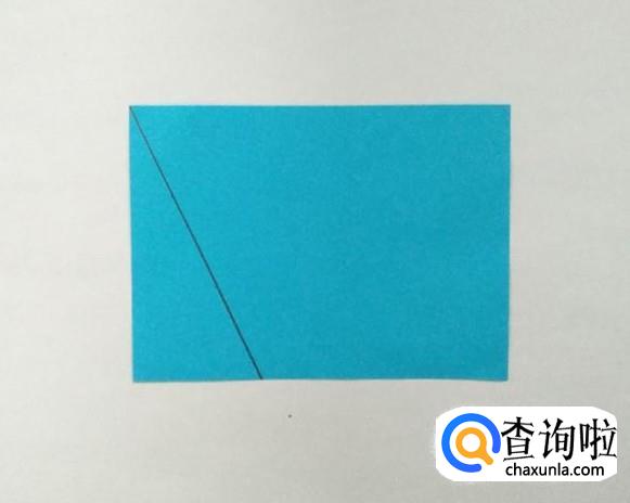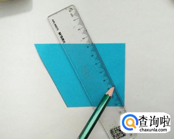 把剪下的三角形像下图这样放到剪纸的右面,用笔在上边取好点。(这样做是为了使两边剪下的三角形尺寸一致)