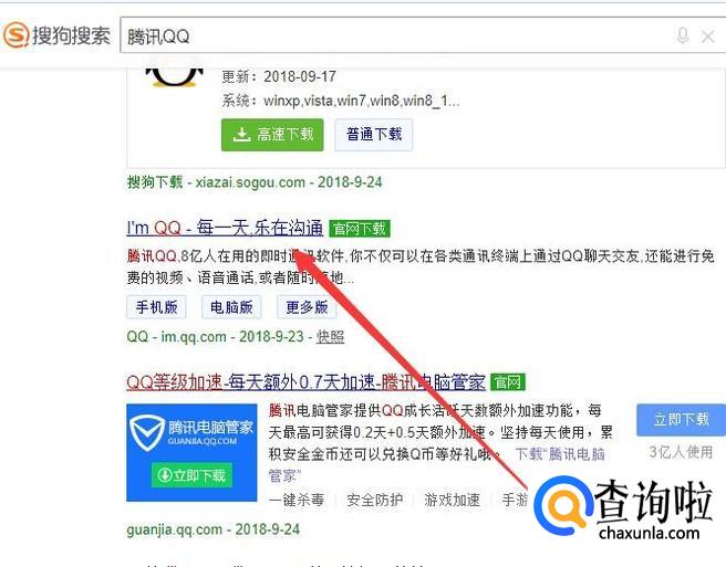 打开搜狗浏览器,搜索腾讯QQ,点击并进入,如图所示。
