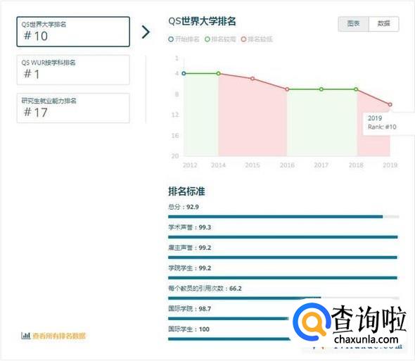 注:QS世界大学排名是世界公认最具影响力的全球性大学排名之一,主要评价指标为:学术领域的同行评价(40%)、全球雇主评价(10%)、单位教职的论文引用数(20%)、教师/学生比例(20%)、国际学生比例(5%)、国际教师比例(5%)