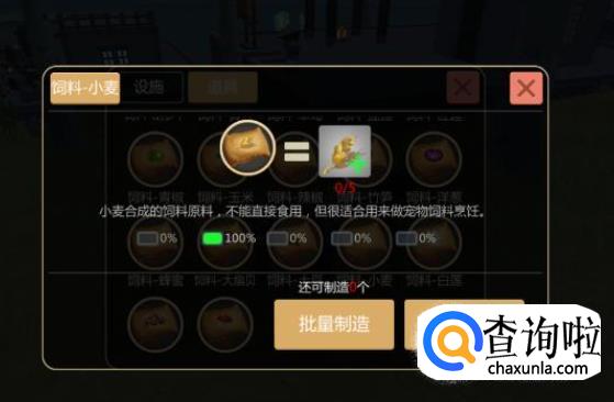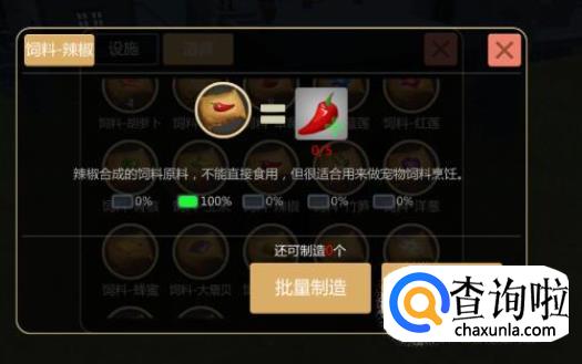 再把制造好的小麦饲料、辣椒饲料,优质饲喂肉块放入烹饪锅,点击“制造1个”。当然材料多可以批量制造。