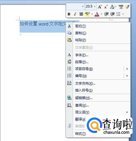 如何设置word文字阳文效果