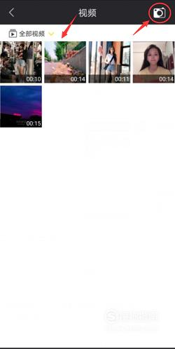 在视频添加页面中,直接点击需要配音的视频即可添加到编辑页面。当然也可以点击屏幕右上角的“相机”图标现场拍摄。