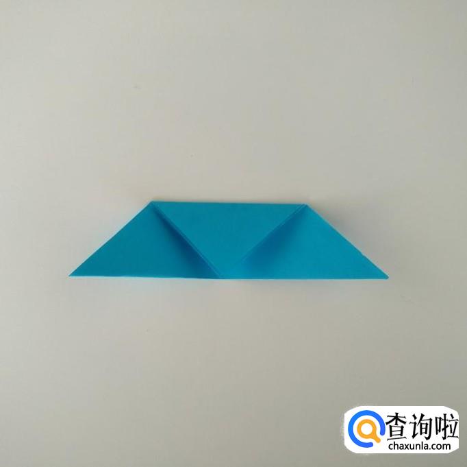 翻过折纸,将上面两个尖角压折成小正方形。