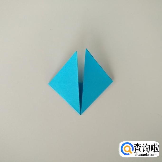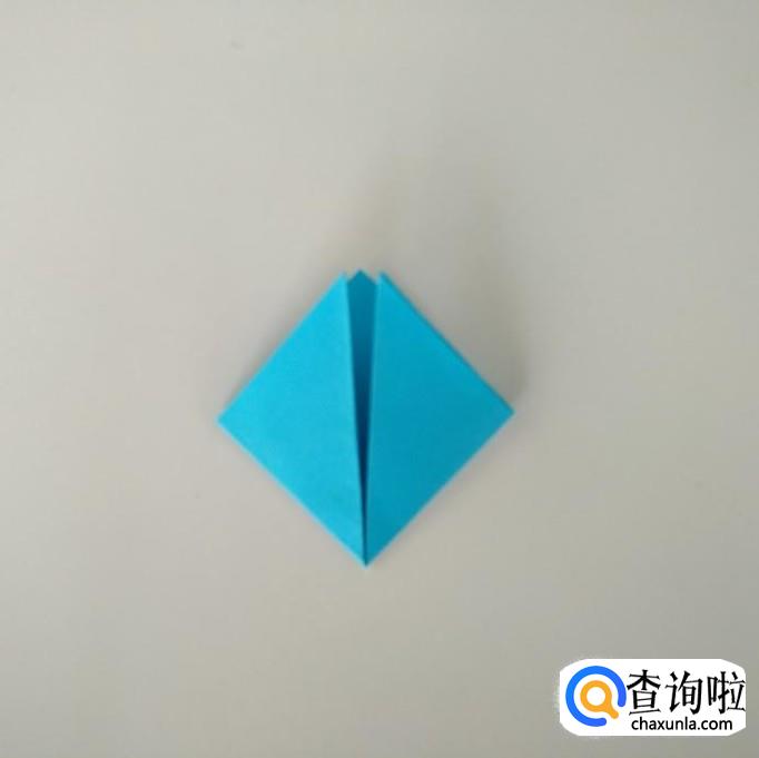 将上步打开,把上面尖角折下来,再把左右两侧折回中心线。