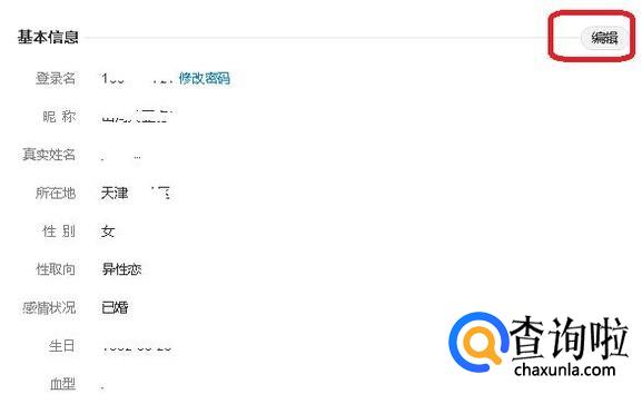 在基本信息的右上角,有一个“编辑”按钮,我们点击一下。