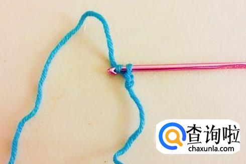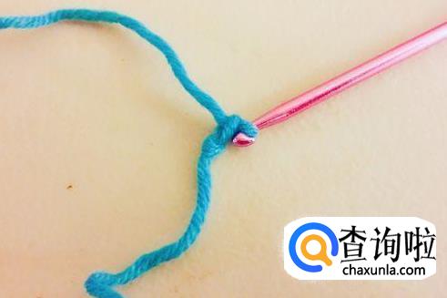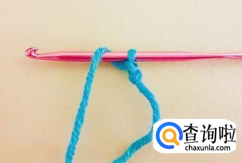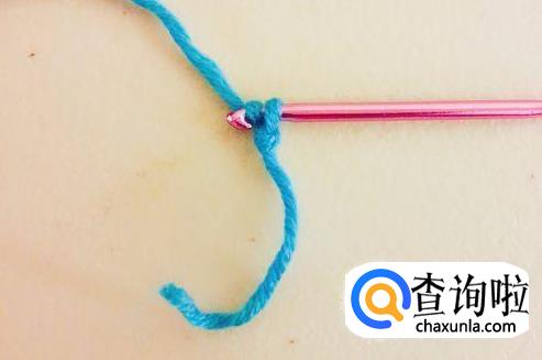 把刚刚挂住的线绕紧钩针,把钩针头朝下,从左向右从“头结”穿过去。