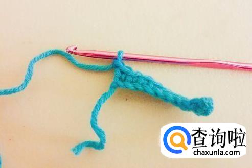 每一行最后一针编织好了之后,还要再多绕一下线,钩针头朝下,穿过针上唯一的圈。以后每行的最后一针,都要多绕一次线,穿一下圈。