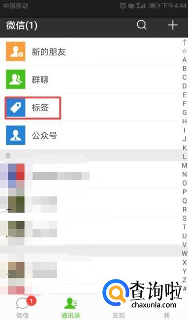 首先,打开微信,然后点击标签;