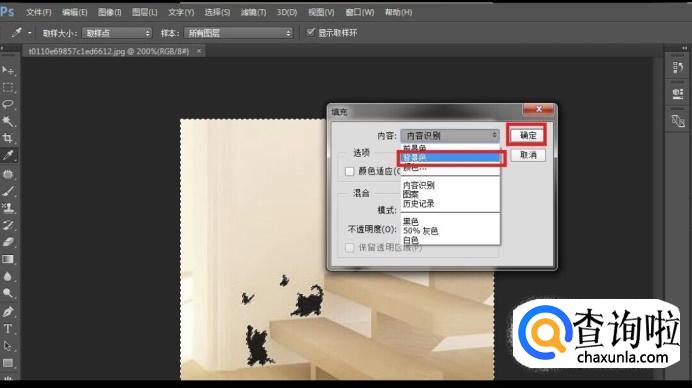 接着点击Delete,在弹出对话框的内容下拉列表中选择背景色并点击确定。