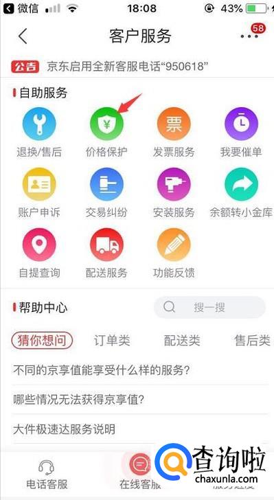在客户服务里就能够看到价格保护的功能,点击一下。