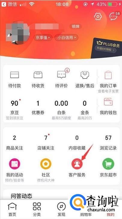 登陆成功后在我的页面里点击客户服务进入到下一步操作。