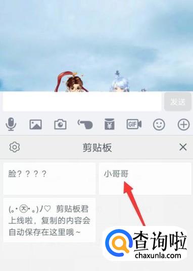 点击一下想要粘贴的内容,即可将其粘贴到消息编辑框,如图所示。