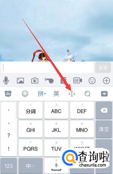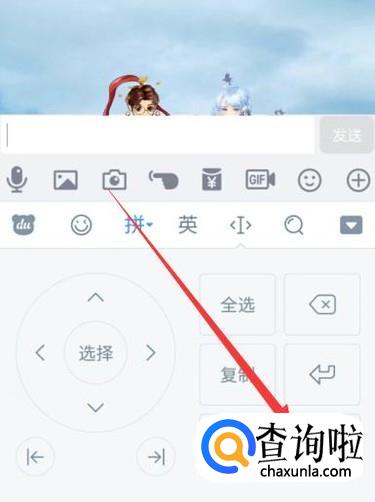 打开手机QQ,进入聊天对话框页面,打开百度输入法,如图所示。